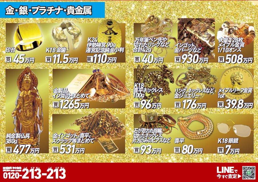 この機会にご自宅に眠っている、貴金属がございましたらぜひまねきやにお売りください。