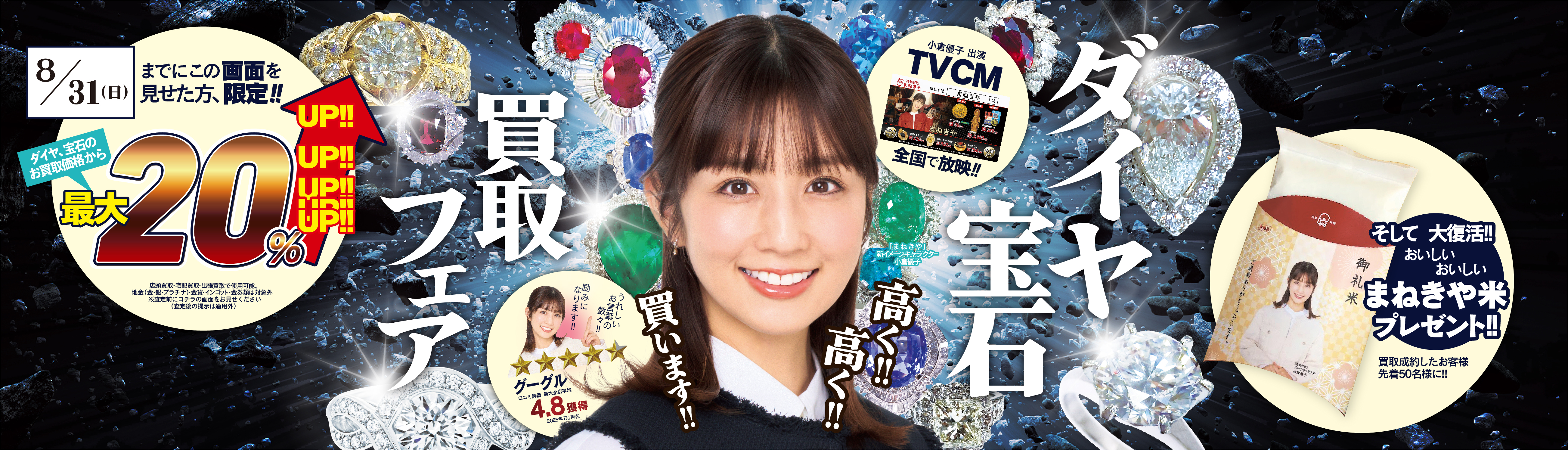 ダイヤ、宝石の買取が最大20%UPの買取フェアを実施しております!査定は無料ですのでアイテム1点だけでもお持ちください!